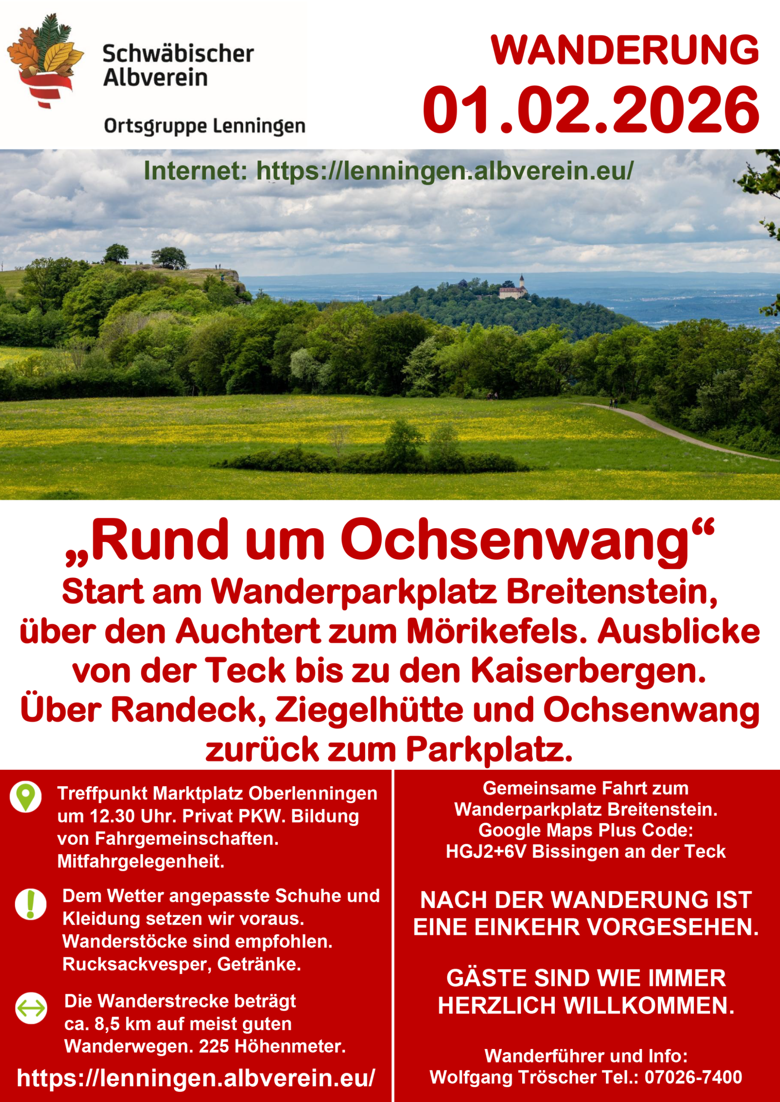 Wanderführer und Auskünfte: Wolfgang Tröscher, Tel.: 07026-7400
