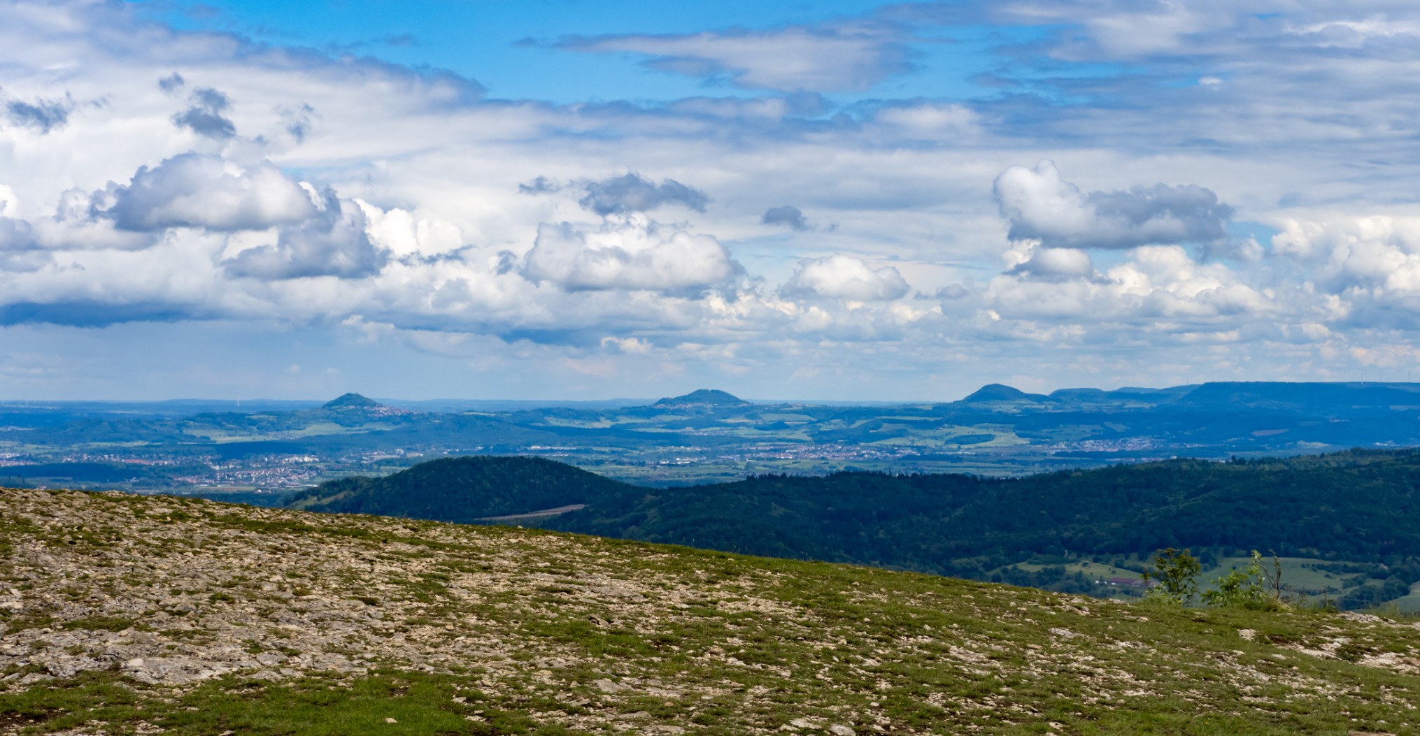 Unterwegs genießen wir herrliche Ausblicke von der Teck bis zu den Kaiserbergen.