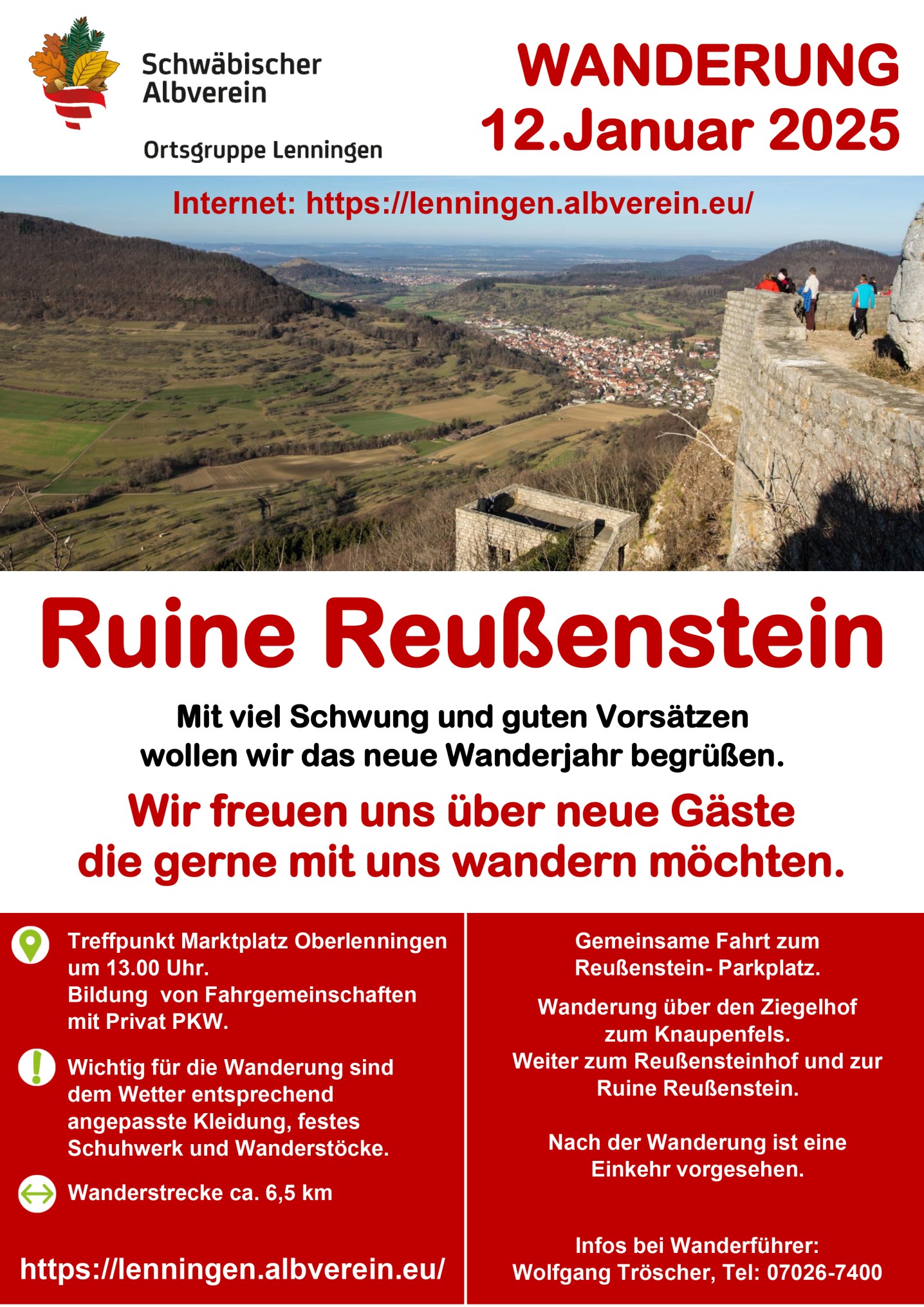 Wanderführer: Wolfgang Tröscher, Tel: 07026-7400